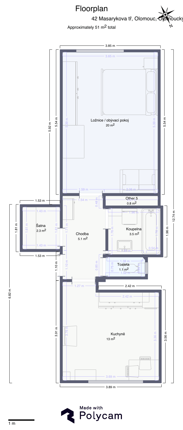Nabízíme k prodeji prostorný byt o dispozici 1+1 s možností snadné přestavby na 2KK díky velkorysé výměře 51 m². Byt se nachází ve druhém patře cihlového domu na prestižní adrese Masarykova 42. 🏡