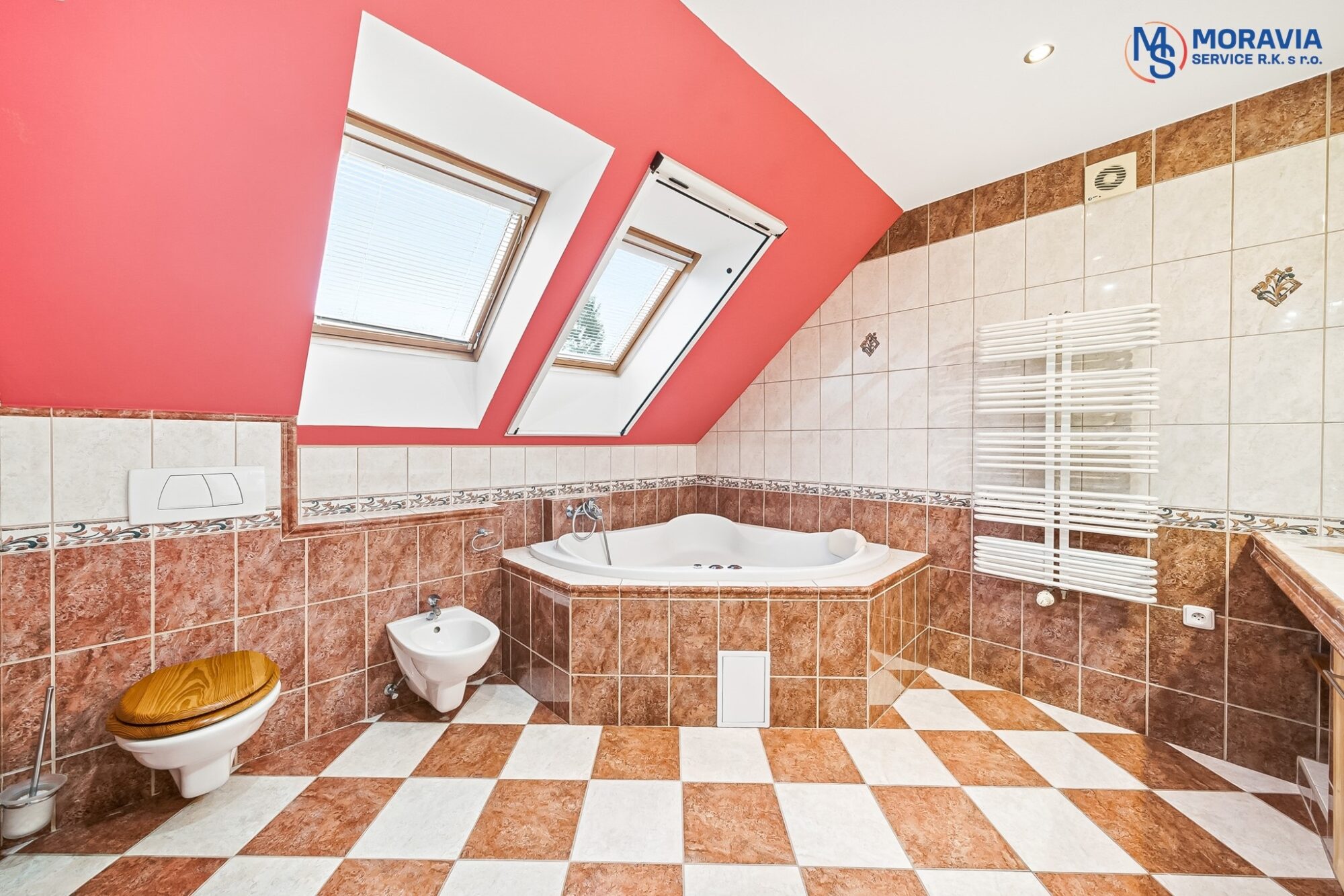 🛁 velká koupelna s hydromasážní vanou, 2 umyvadly, bidetem a toaletou ✨